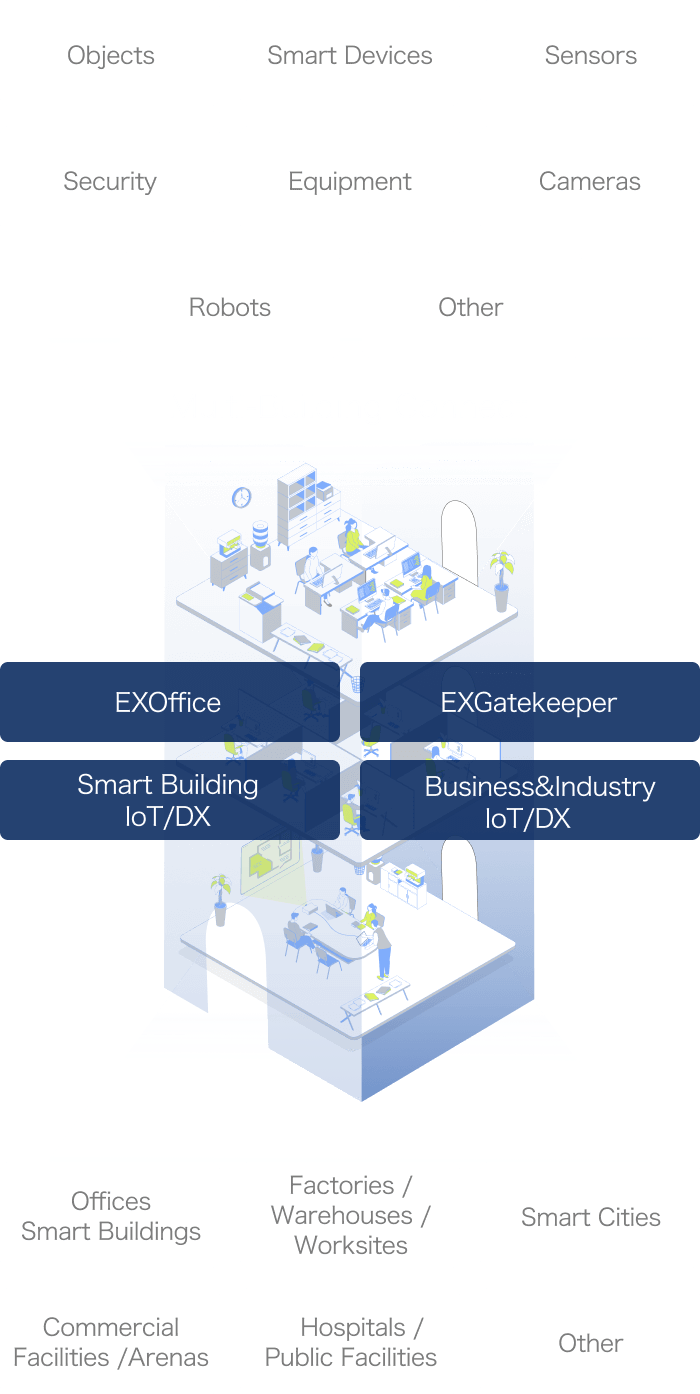 With proprietary infrastructure technologies such as the EXBeacon Platform and WHERE mesh, more than a thousand devices can be stably connected, enabling real-time visibility into the movement of people and objects and into environmental conditions. Built on wireless, high-density, and fault-tolerant architecture, these technologies—proven in practical deployment—are now being expanded as the foundation for smart buildings that connect and activate entire facilities of increasing complexity and diversity.