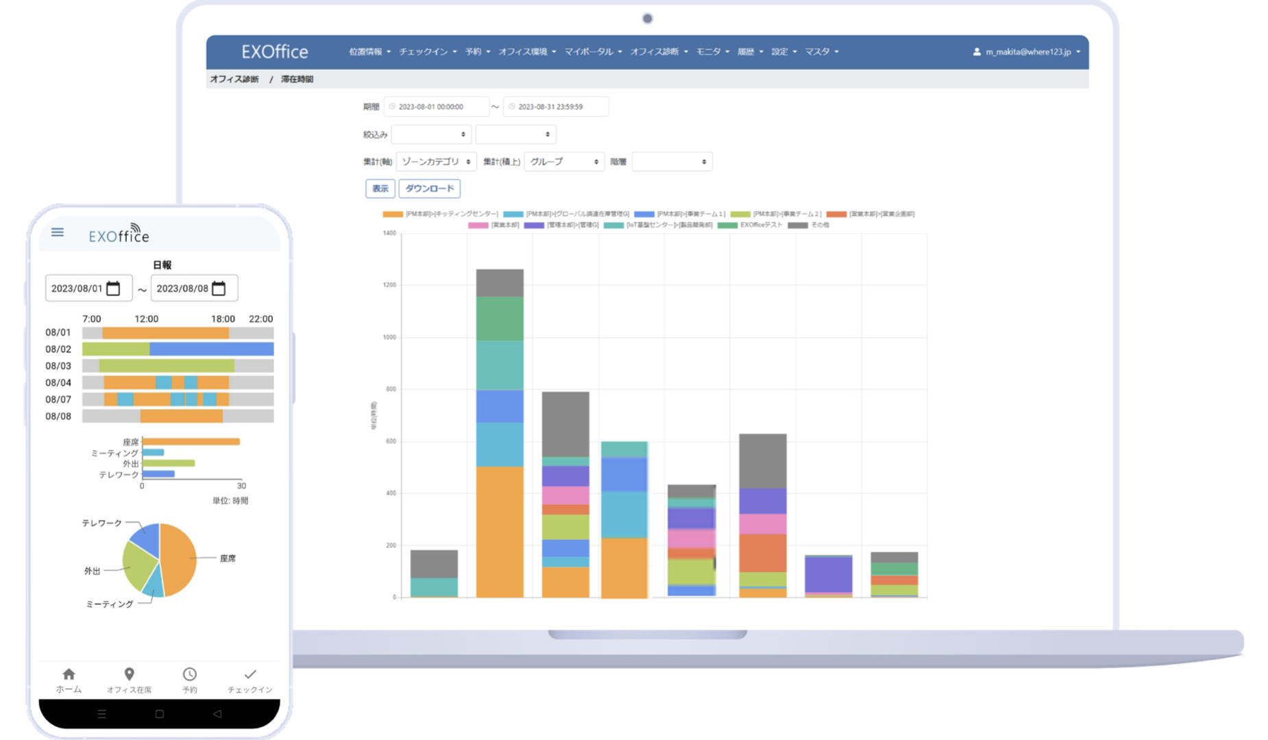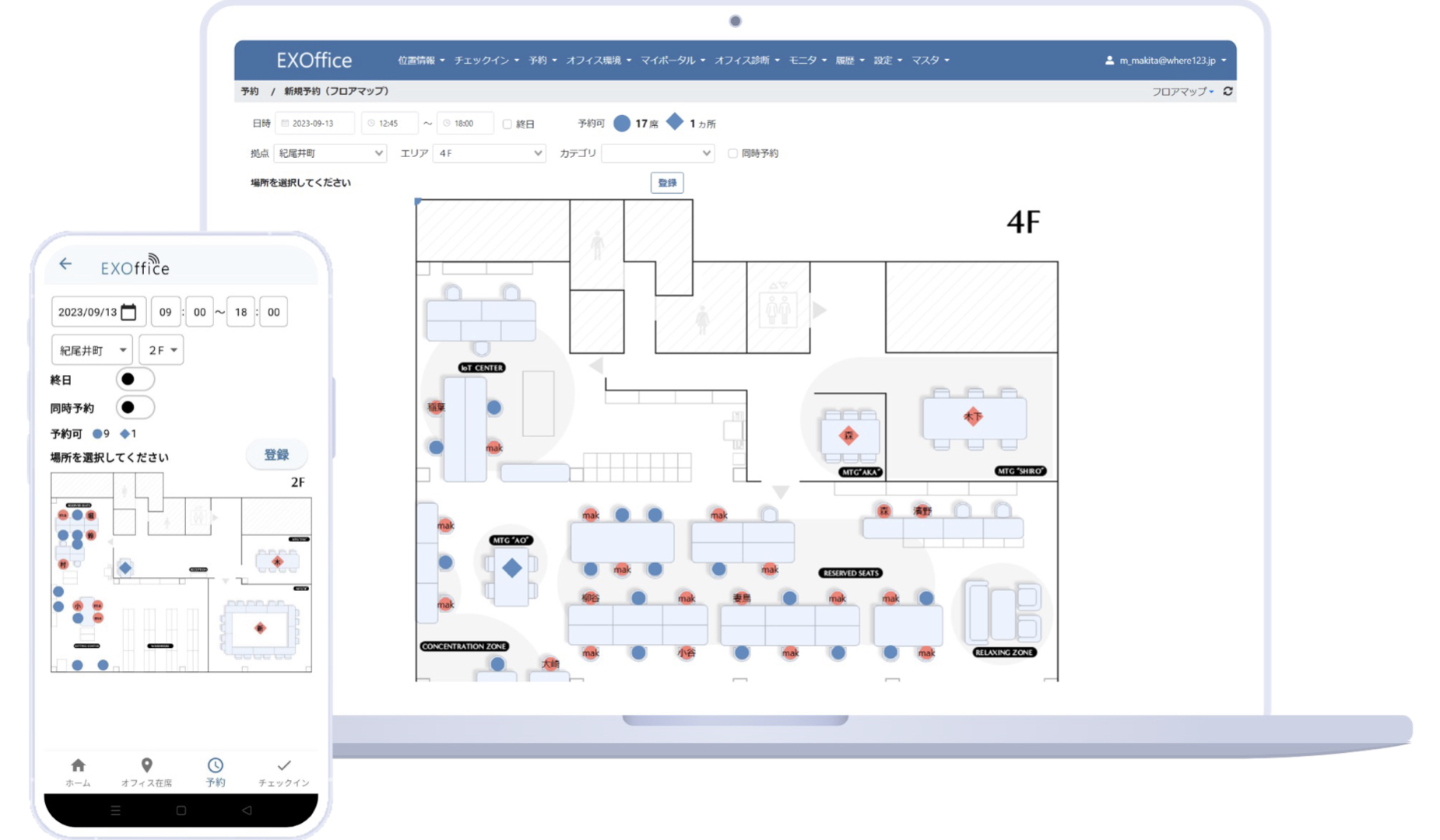 EXOfficeは、スマートオフィスの実現に向けた包括的なツールセットを提供し、企業のオフィス環境を効率的かつ効果的に管理します。以下、主要機能を簡潔に紹介します。