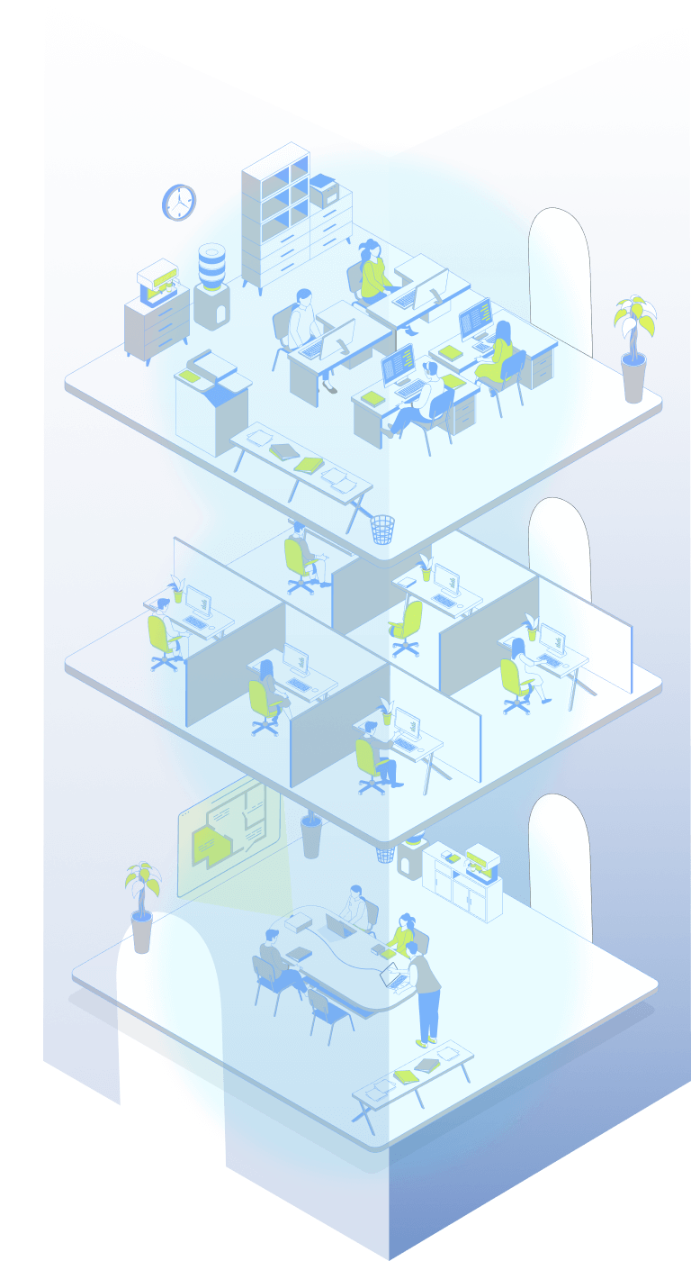 Building on the implementation expertise and proprietary technologies developed through our Smart Office initiatives, WHERE expands its capabilities to connect entire buildings—and ultimately, entire cities.