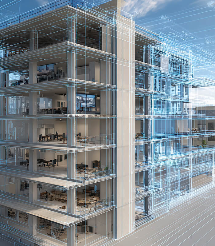 HVAC, lighting, sensors, and business applications are integrated according to equipment specifications and structural conditions.