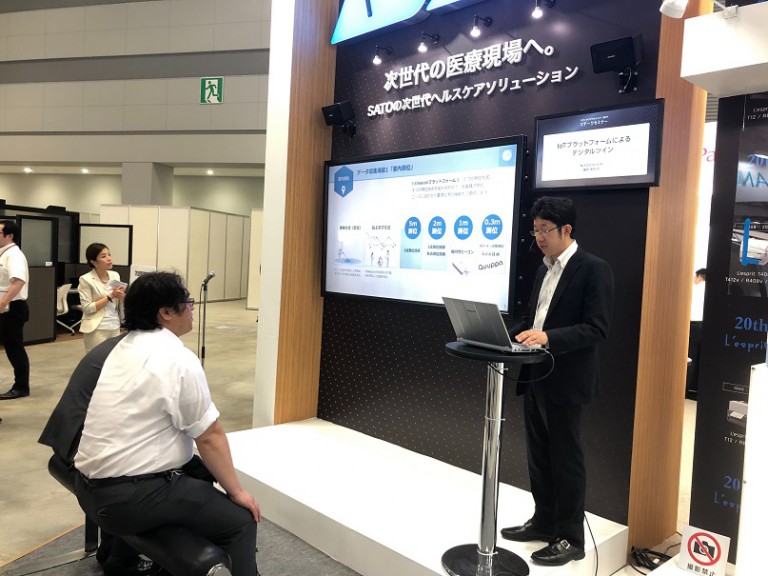 医療や介護の現場のご担当者様と貴重な情報交換をさせていただき、バイタルセンサー(MEDiTAG)と弊社EXBeaconプラットフォームを連携したシステムのデモも好評いただきました。