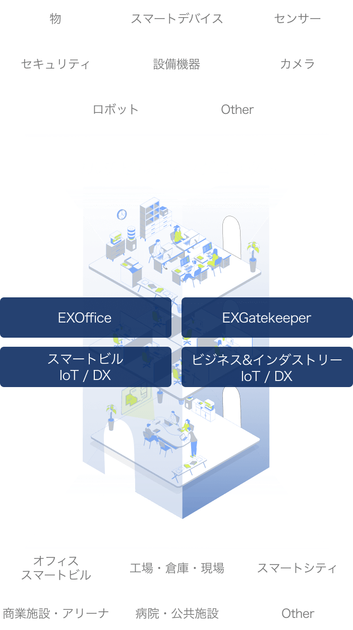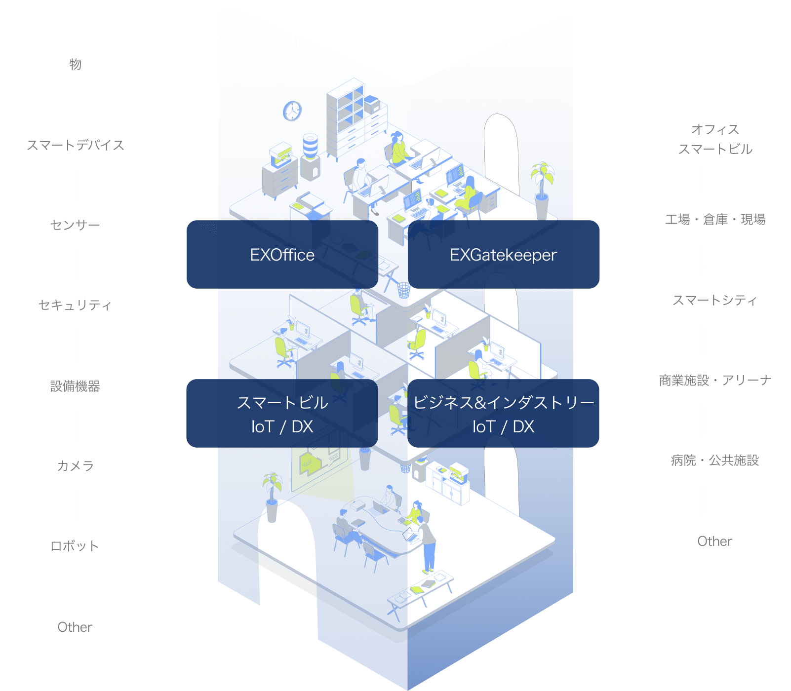 オフィス、工場、物流、病院、商業施設など――“あらゆる建物“に対応し、空調・照明・センサー・入退室・勤怠システムなど――“あらゆるもの“をつなぐ。